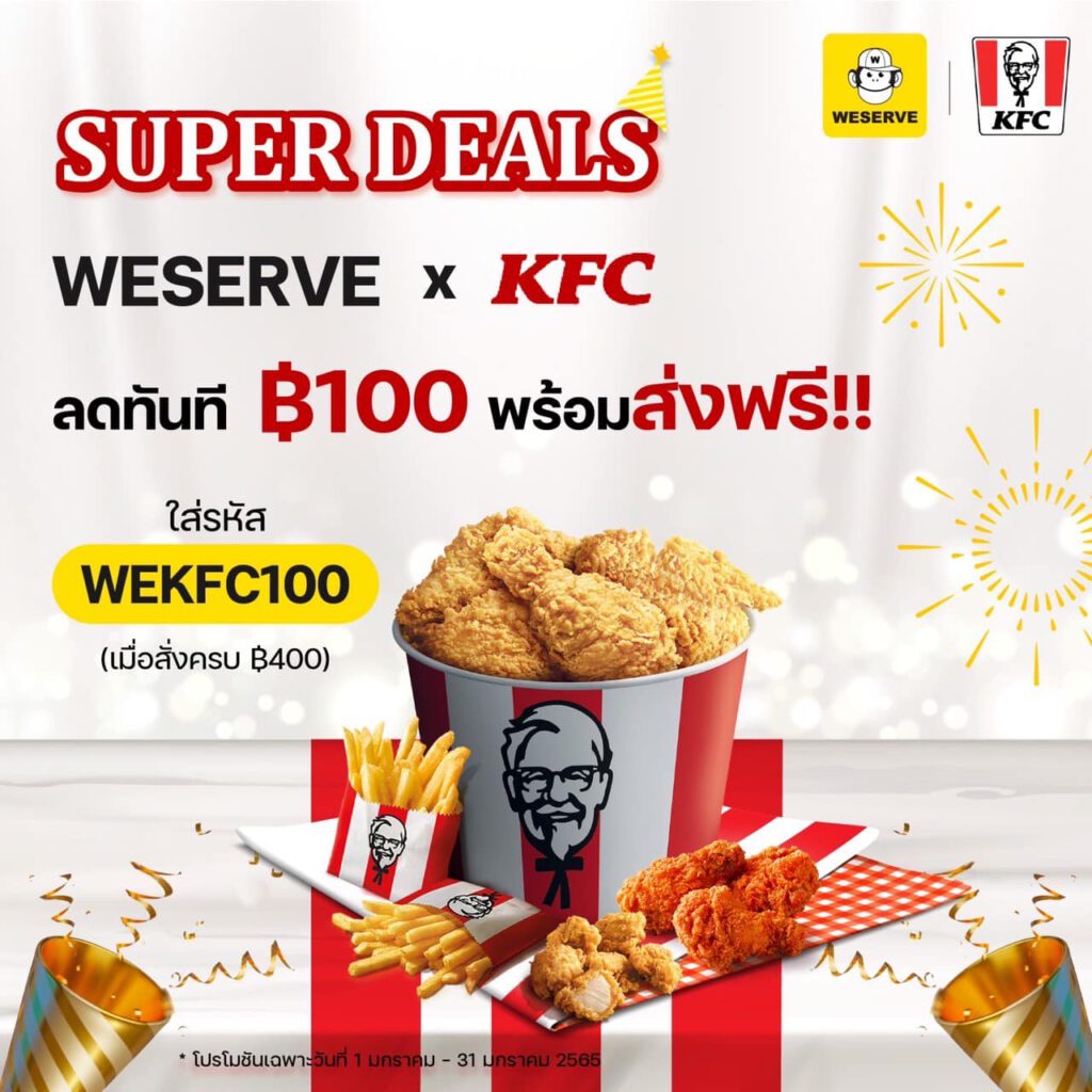 เริ่มต้นปีใหม่ด้วยเมนูจุใจจาก KFC พร้อมรับส่วนลด ฿100 แถมส่งฟรี !! ![]()